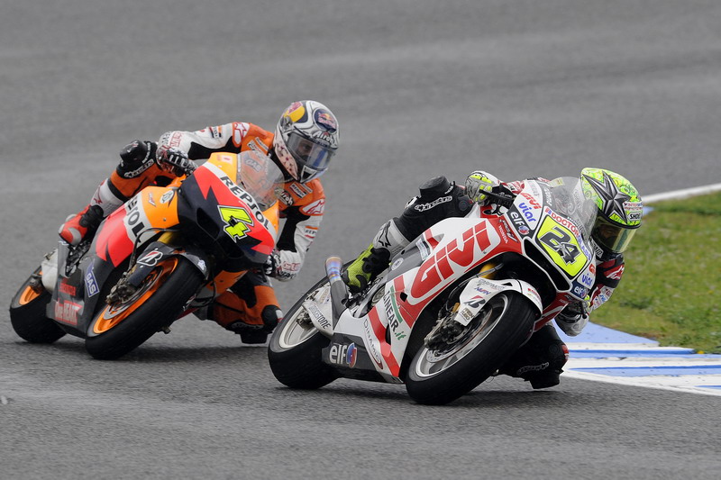 ELIAS SCORES HIS FIRST POINTS OF THE SEASON IN THE WET AT JEREZ Jerez, 3 April : after two days of summer weather, the first round of 2011 season at Jerez de la Frontera was run on the wet today with track temperature of 15 degrees only. The 27-lap race has started at 14:00 local time with the premier class riders lining up under cloudy skies at the South Spain race track which saw Lorenzo winning ahead Pedrosa and Hayden. Despite the bad conditions the LCR Honda MotoGP racer Toni Elias started from the last spot on the grid ending the race with a positive 9th position. The Spaniard has the capability to keep his pace till the last lap while some of his “colleagues” crashed out because of the slippery surface. Thanks to his determination Elias has gained his first 7 points in the official standing but needs further set up adjustments to improve his performances aboard the RC212V. LCR Team will be back on track on the 1st of May for the Portoguese GP. Elias – 9th: “Honestly I am not happy about the performance as my feeling on the bike was still bad but the 9th position in these conditions is a positive result for me and the Team. I know I have been lucky because many riders crashed out and I was capable to end the race although the tyres situation was very difficult for everybody because we just had the warm up session on the wet. However we must continue our good job to improve our future performances....I am aware of this and want to thank my Team for their efforts